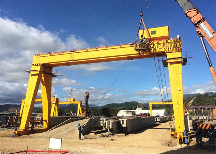 Outdoor Or Indoor Track Mounted Electric Trolley Double Girder Gantry Crane is used with CD, MD and other types of electric hoist. It is a small and medium-sized crane with rail operation. This product is a general-purpose using crane,which is mostly used for loading and unloading or grasping materials in open aerial and warehouses. The crane control mode have ground control and cabin control. The crane structural frame have truss type, box type, top box with truss leg type for choose