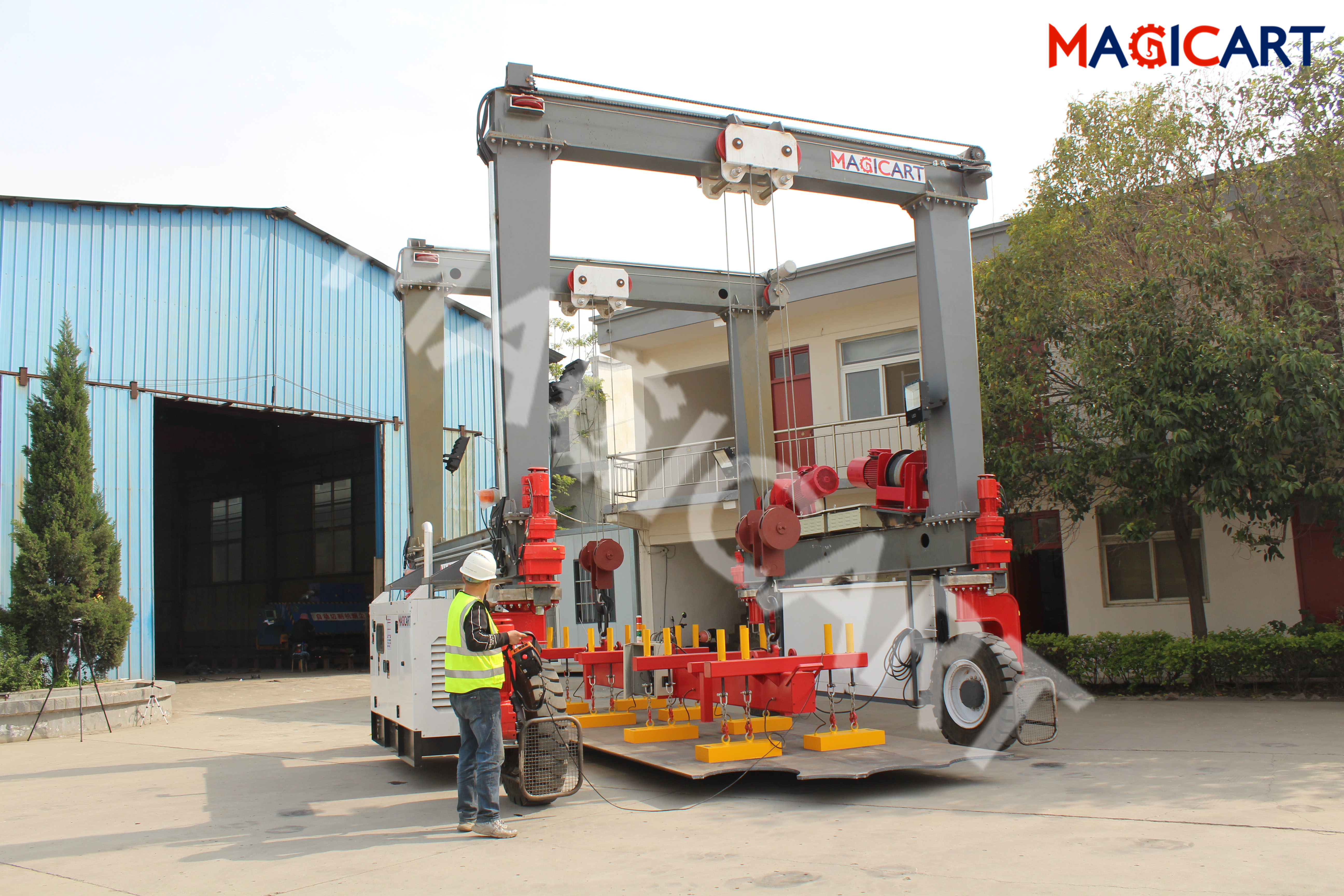 High temperature steel plate trafrom the workshop to the workshop througth magnetic spreader and Mobile gantry crane